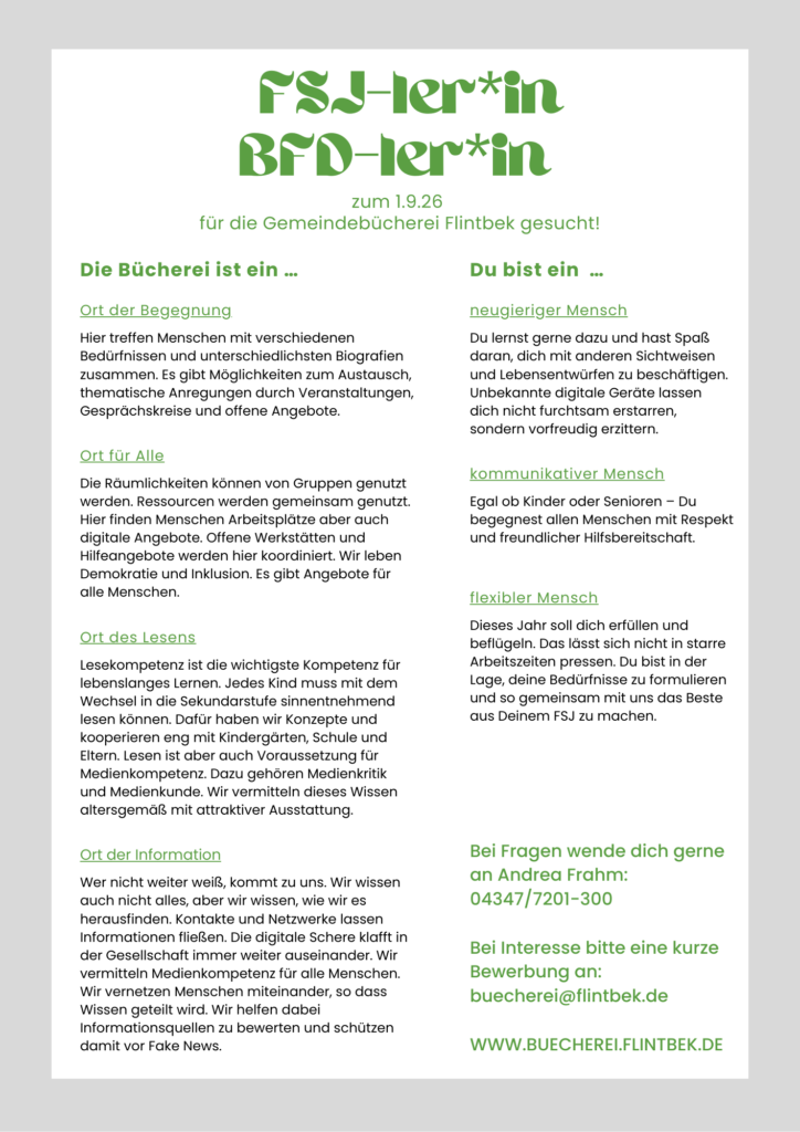 Freiwilliges Soziales Jahr oder Bundesfreiwilligen-Dienst in der Bücherei