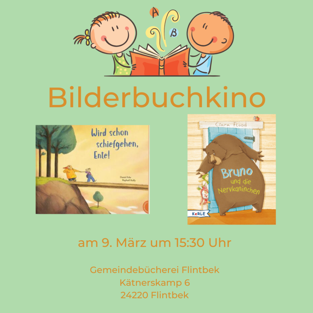 Am Montag, 9. März gibt es wieder ein Bilderbuchkino in der Bücherei. Wir zeigen die Bilder des Buches groß auf der Leinwand während eine geschulte Vorlesepatin die Geschichte vorliest. Geeignet ist das Bilderbuchkino für alle Menschen, die 10 Minuten zuhören können. „Wird schon schiefgehen, Ente“ erzählt von der ängstlichen Ente, die nicht nicht mit auf den Ausflug will, weil sie sich sorgt, was alles unterwegs passieren könnte. „Bruno und die Nervkaninchen“ ist eine witzige Geschichte über einen Bären, der neue Nachbarn bekommt – die Nervkaninchen. Er will doch einfach nur seine Ruhe haben! Aber die Kaninchen eröffnen ihm neue Möglichkeiten. Ob die er vielleicht doch noch ausprobiert?